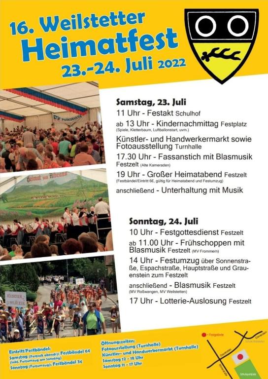 23. und 24. Juli 2022 - Heimatfest mit Künstler- und Handwerkermarkt in Weilstetten